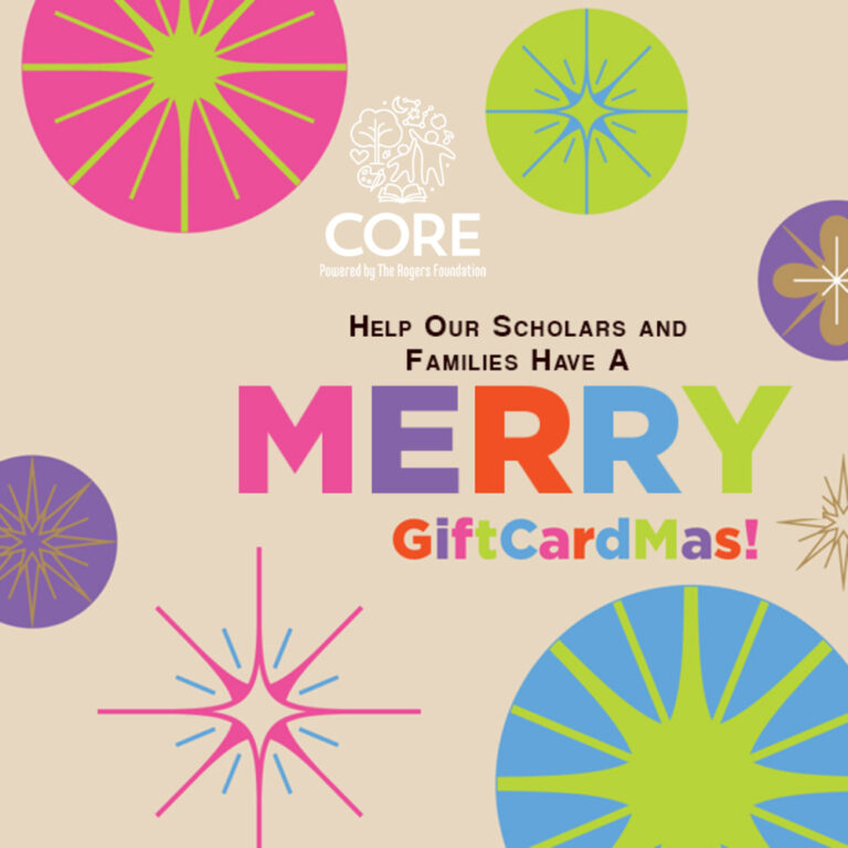 At CORE, we are whatever our Scholars and their families need to ensure success in school and life. This year, we will help give them the most flexible gifts of all –  gift cards.